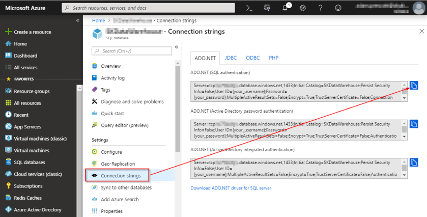 Need help obtaining the connection string? If you’re using SQL Azure, you can browse to the database in the Azure Portal, and click the Connection Strings link.