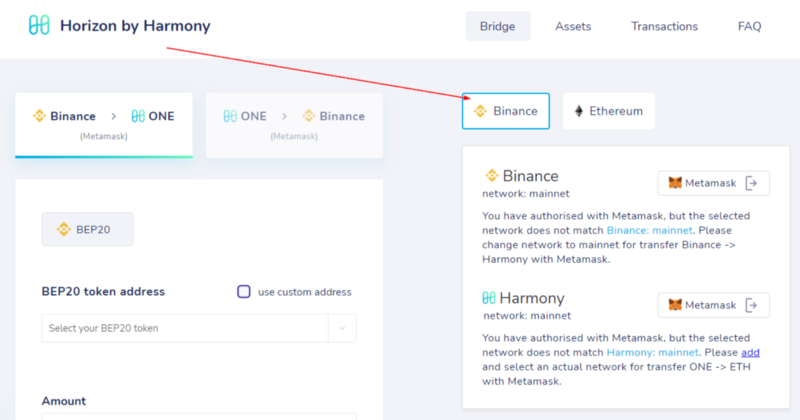 To use the Ethereum bridge, browse to https://bridge.harmony.one and select ETH > ONE. Connect your Ethereum wallet via MetaMask, and you’re ready to go.